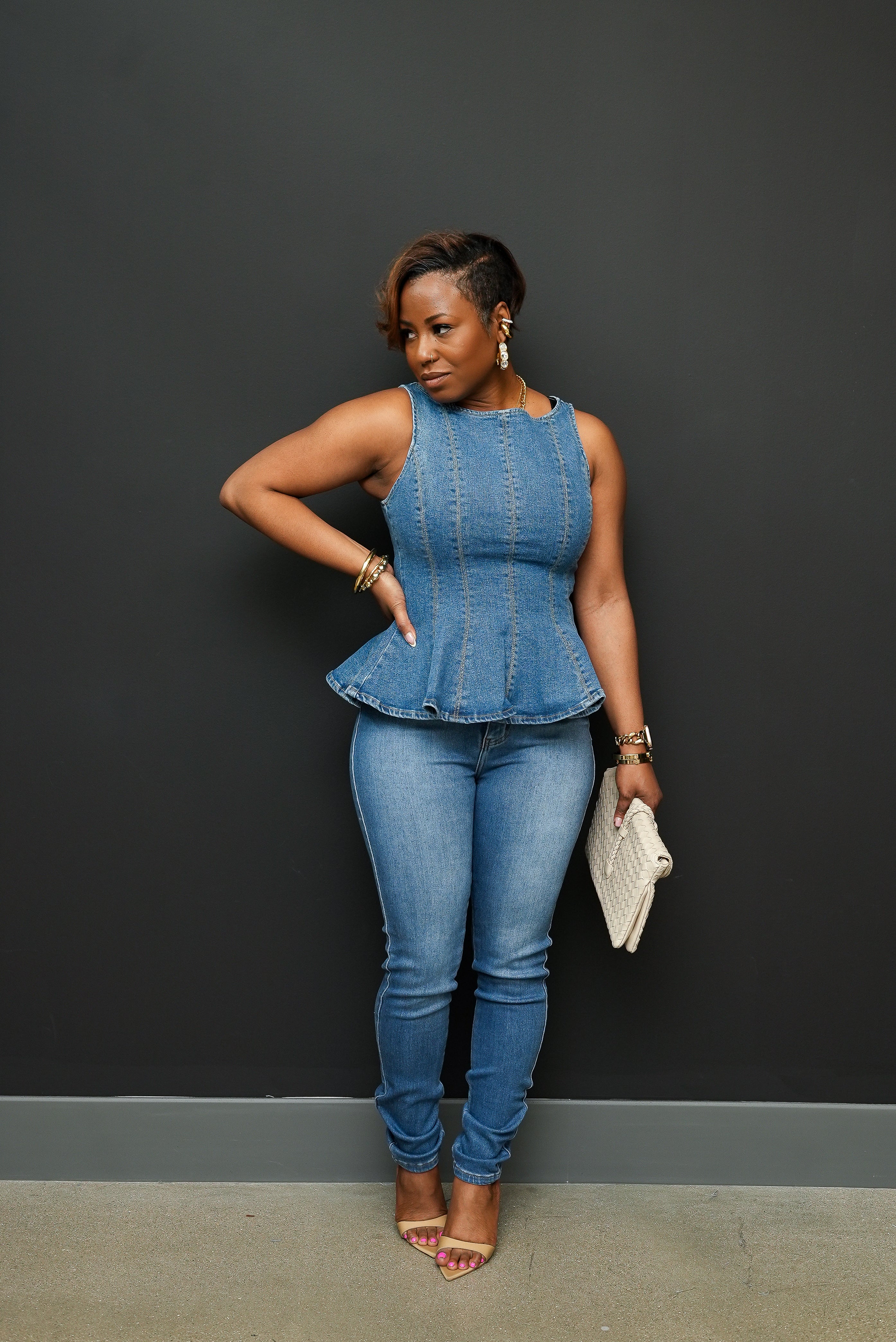 Off the shoulder palazzo denim set