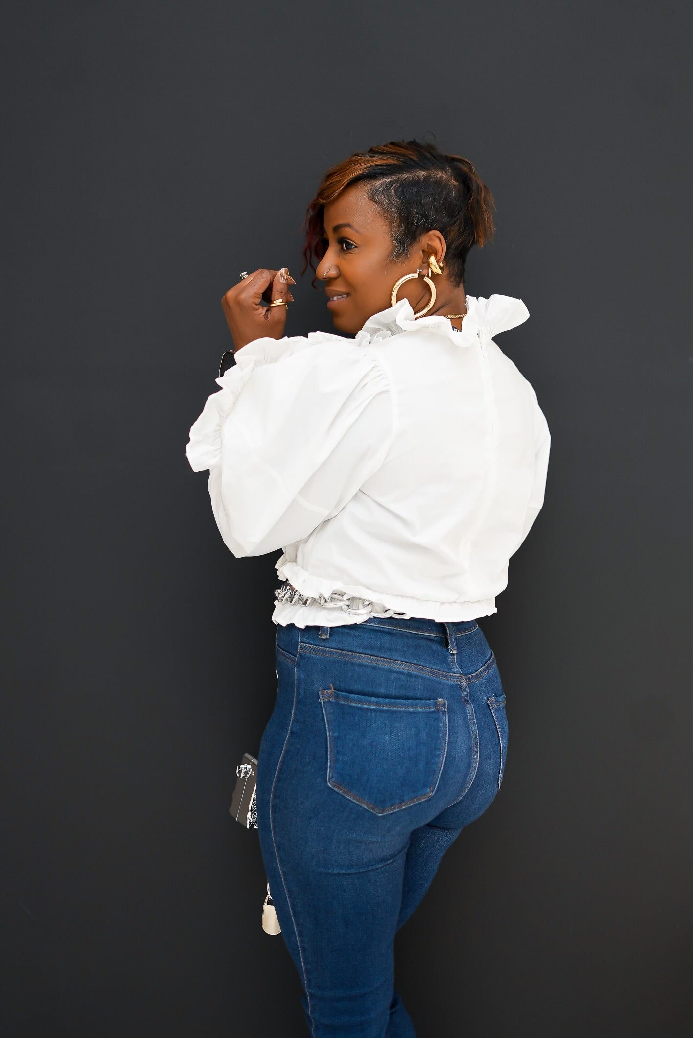 Elevate your wardrobe with our Puff Sleeve Ruffled Blouse, the epitome of Golden Chic elegance with attitude. This statement piece features dramatic puffed sleeves and flirty ruffles that demand attention. Perfect for those who aren't afraid to turn heads and own their style. Because when you're wearing Golden Chic, basic is never an option.