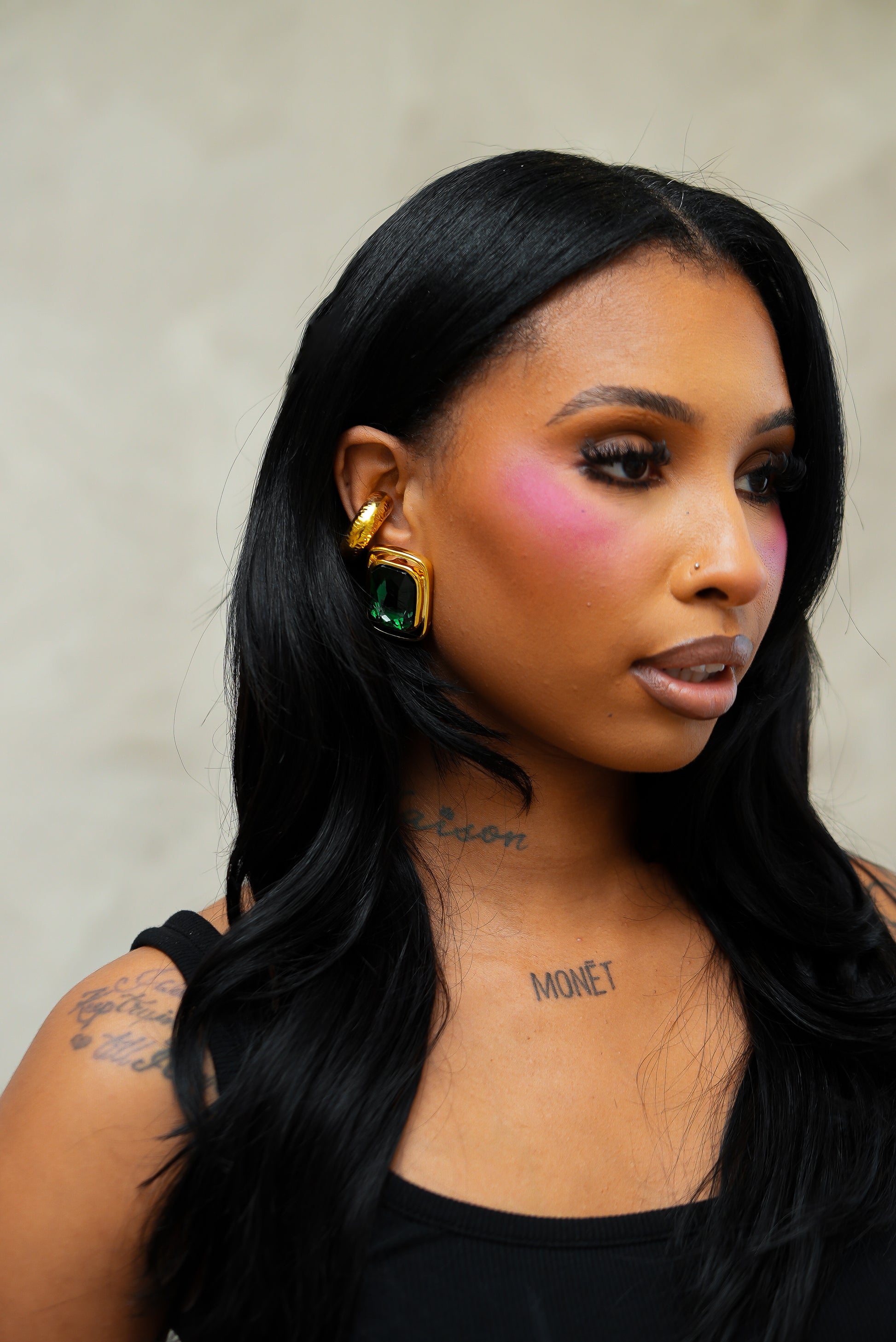 Ice out your lobes with these icy-silver rectangular studs. The layered metal detailing gives it dimension, edge, and that Golden Chic signature statement vibe. Frosty but never cold—these earrings are heat.