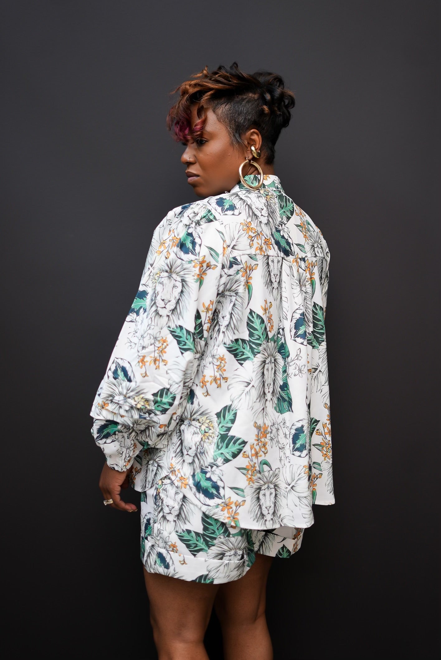 Unleash your inner wild side with our Untamed Chic Short Set. This paperbag set features a fierce animal print, a trendy twist detail, and an oversized shirt, making it the perfect combination of comfort and Golden Chic sass.